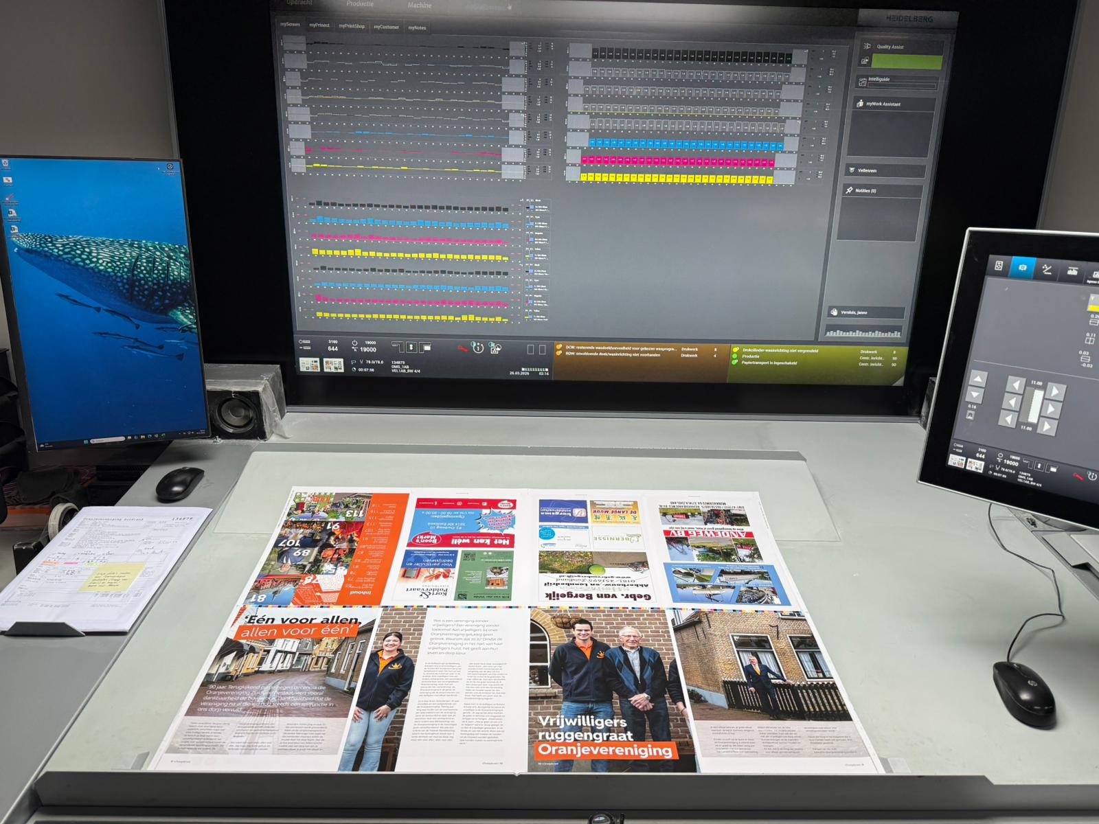 Na een intensieve periode van vergaderingen, onderlinge afstemmingen, beoordelingen en bijstellingen van foto’s en teksten zijn wij zover gekomen dat de te drukken Oranjekrant 2026 naar Damen Drukkers is gestuurd en daar de eerste drukproef van de pers is gerold.